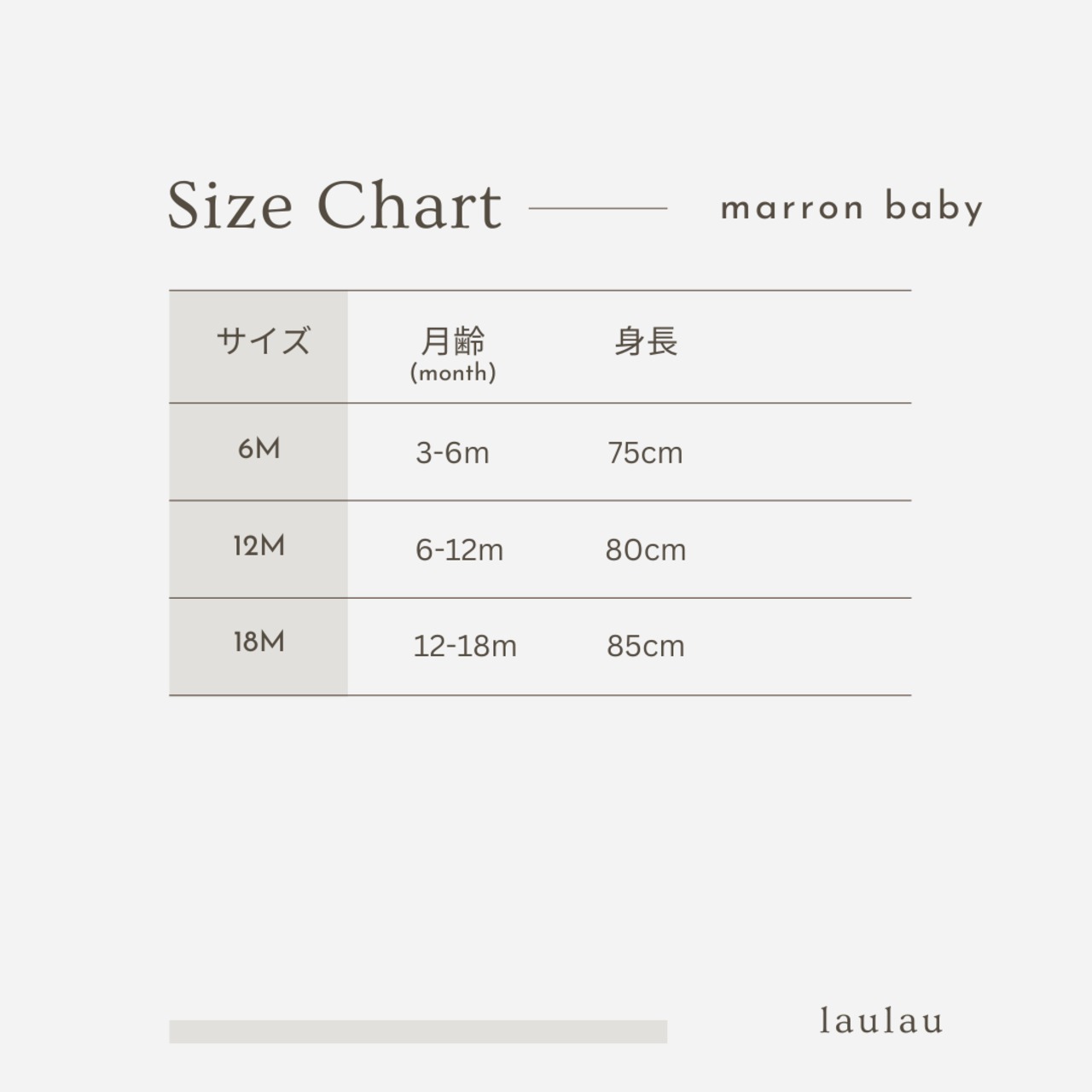 6m(-75cm) / 12m(-80cm) / 18m(-85cm)