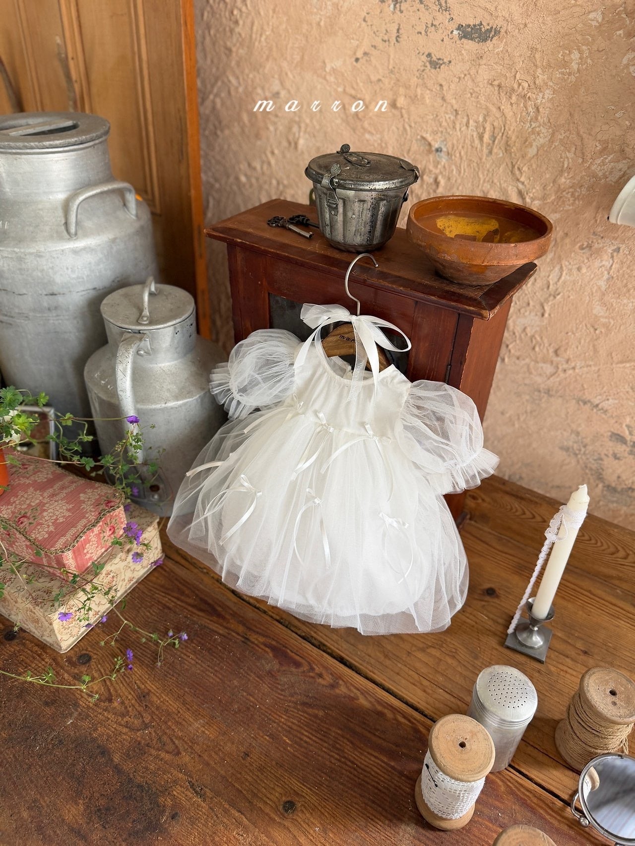 [予約] Ribbon rompers / marron