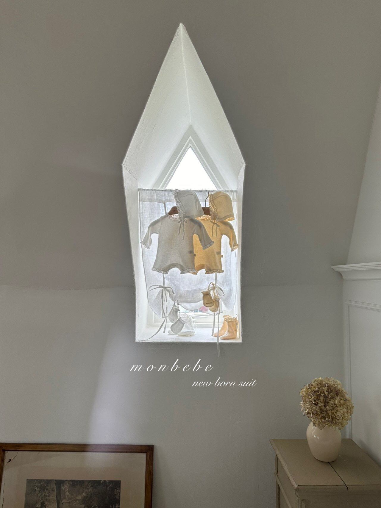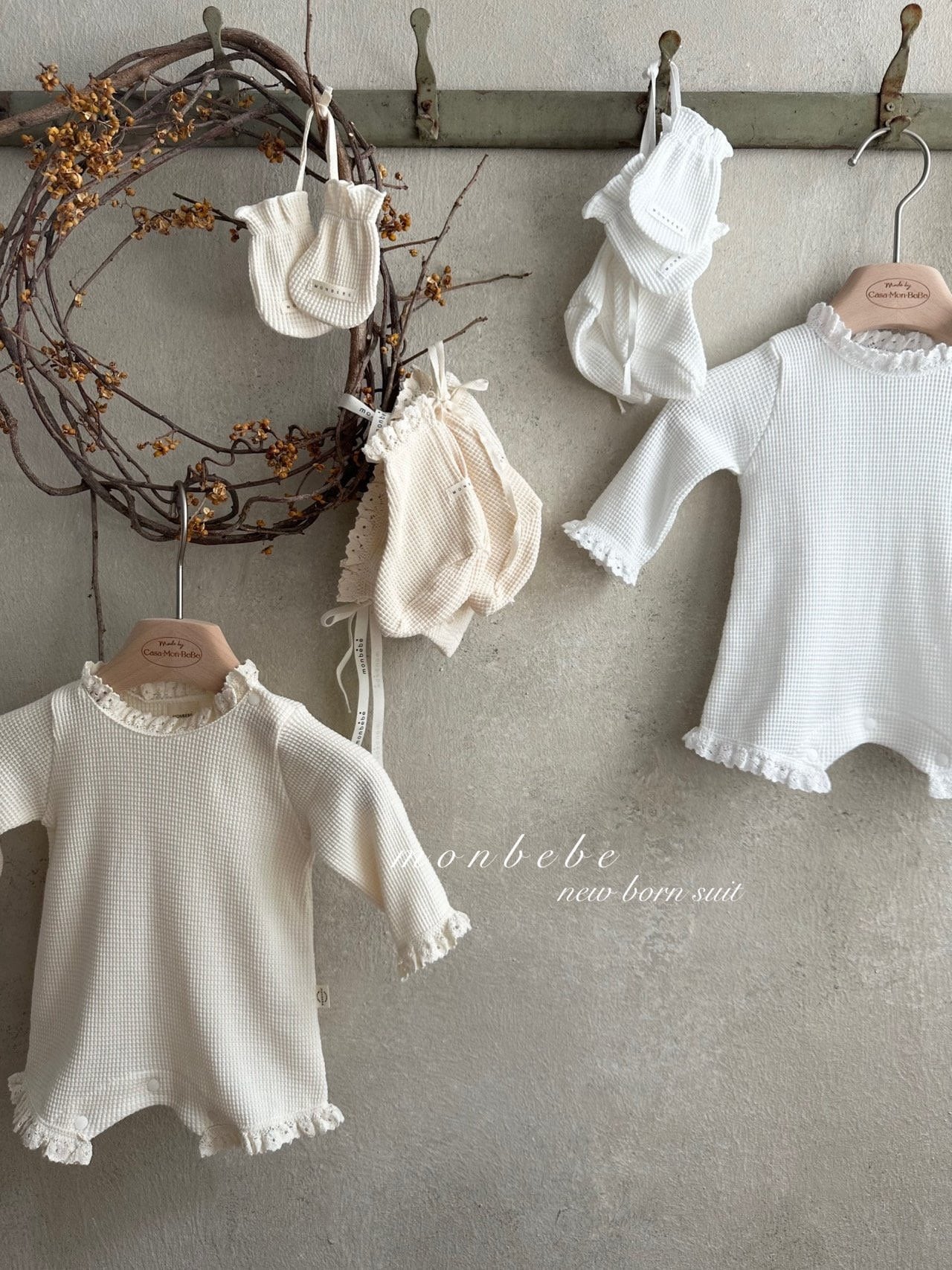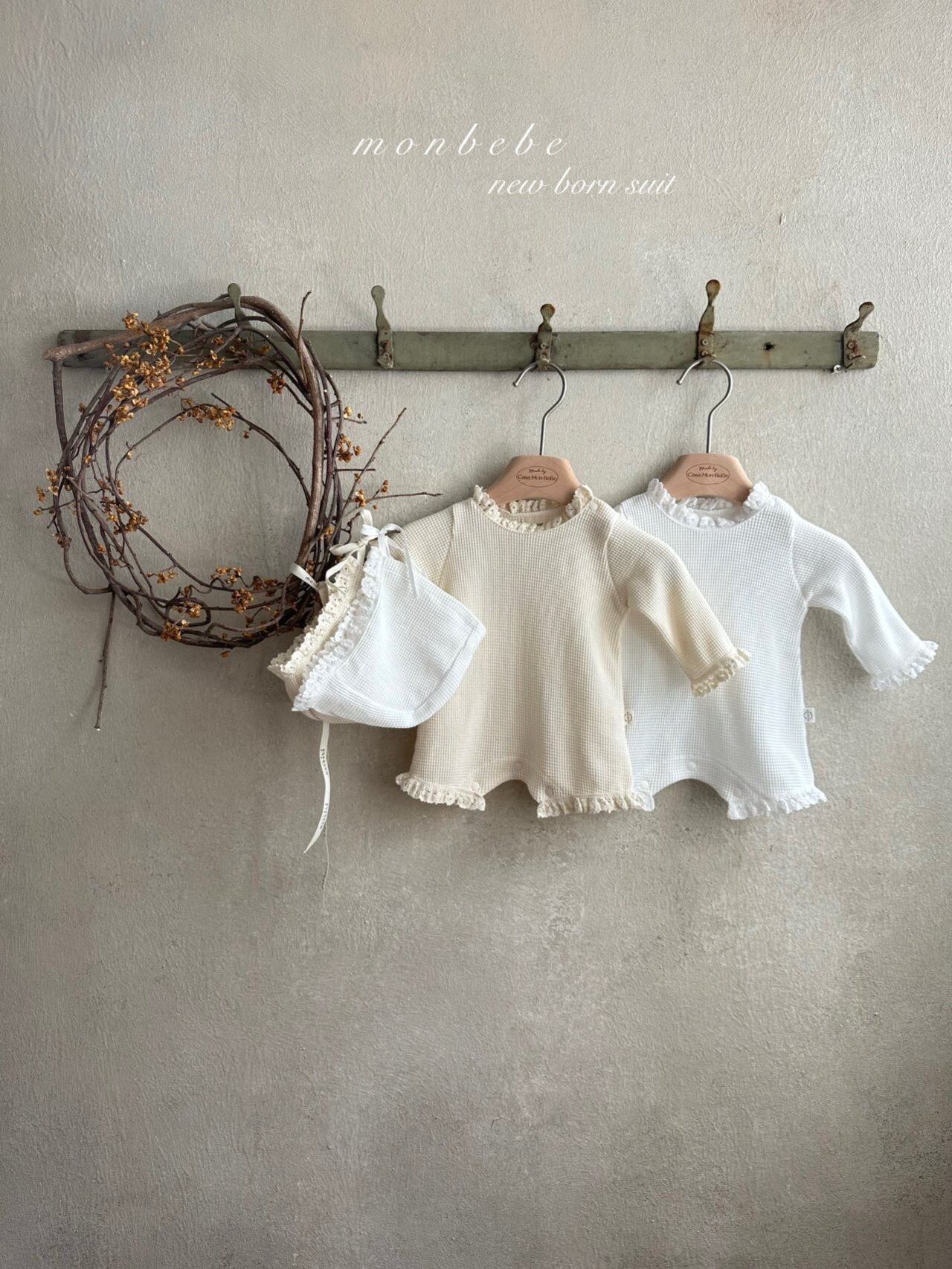 [即納] waffle suit with bonnet / monbebe